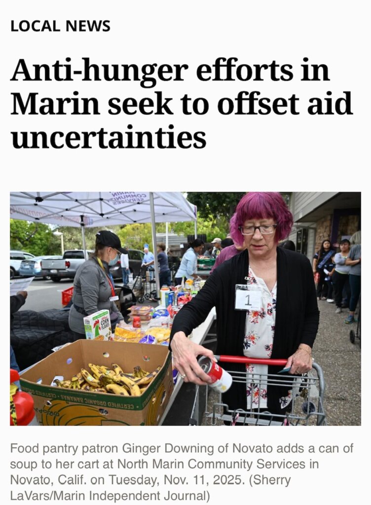 We are grateful to the Marin Independent Journal for shedding light on the urgent issue of potential funding cuts to food pantries—and the serious impact this could have on families in our community. The article features an interview with North Marin Community Services CEO Cheryl Paddack, who discusses how these challenges are affecting our local food pantry and the increasing need for support.